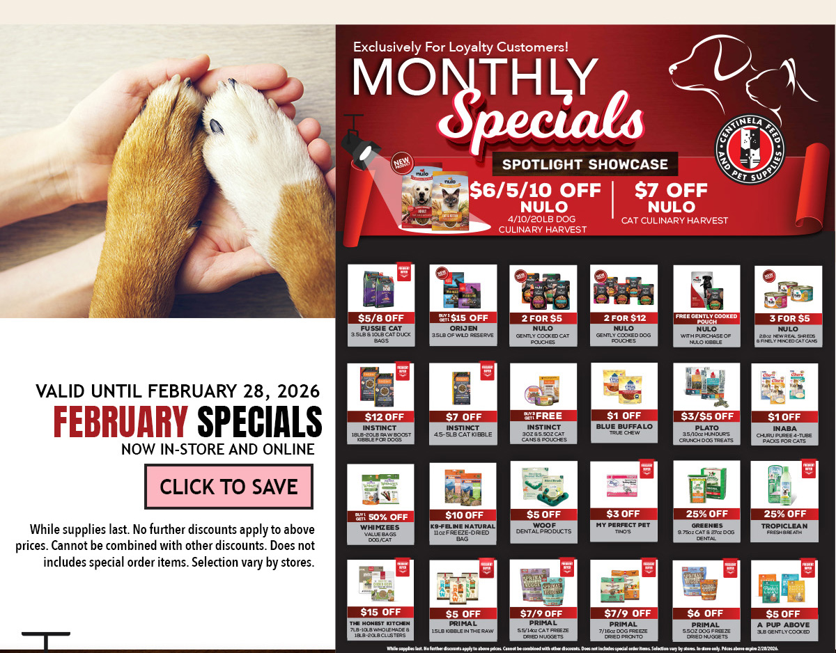 Copyright © 2024 Centinela Feed Inc, All rights reserved. Thank you for opting in to the Centinela Feed Inc list. Our mailing address is: Centinela Feed Inc 2727 Maricopa St Torrance, CA 90503-5145 | | No longer want to receive these emails? Unsubscribe. Centinela Feed & Pet Supplies 2727 Maricopa Street Torrance, CA 90503 | | | | |