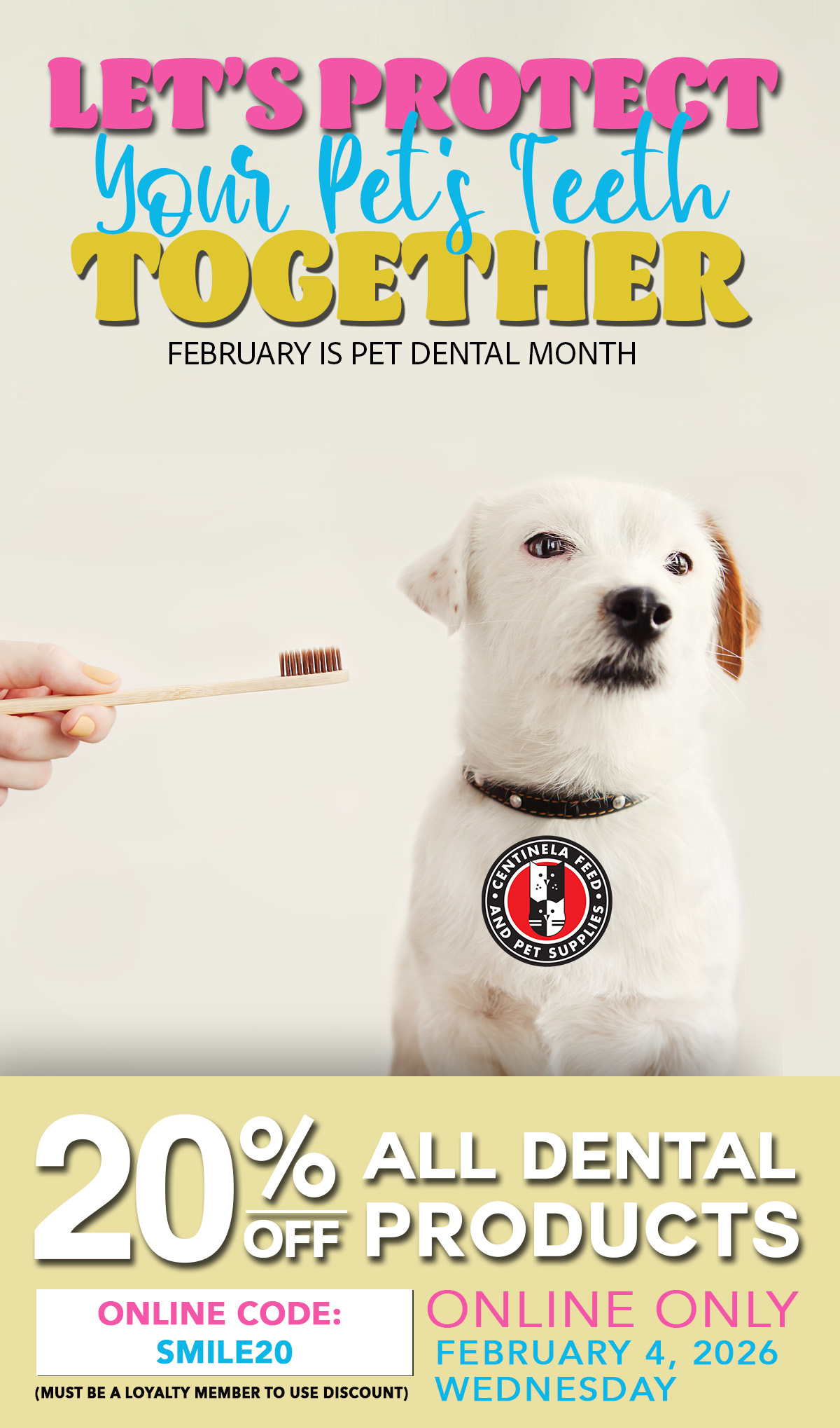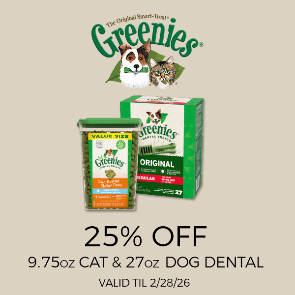 20% Off All Dental Products. Valid Online Only. Online: Must apply coupon code for online discount. Customer must sign up/log-in to use coupon code. Not valid with any other promotion or sale. Discount taken pre sales tax. *Excludes In-Store Specials, gift cards, Small Batch Bulk Boxes, Primal, and bulk litter. While Supplies Last. No Rain Checks. Only 1 time use per coupon code per customer account. Offer Valid: 02/04/2026. | | | | |