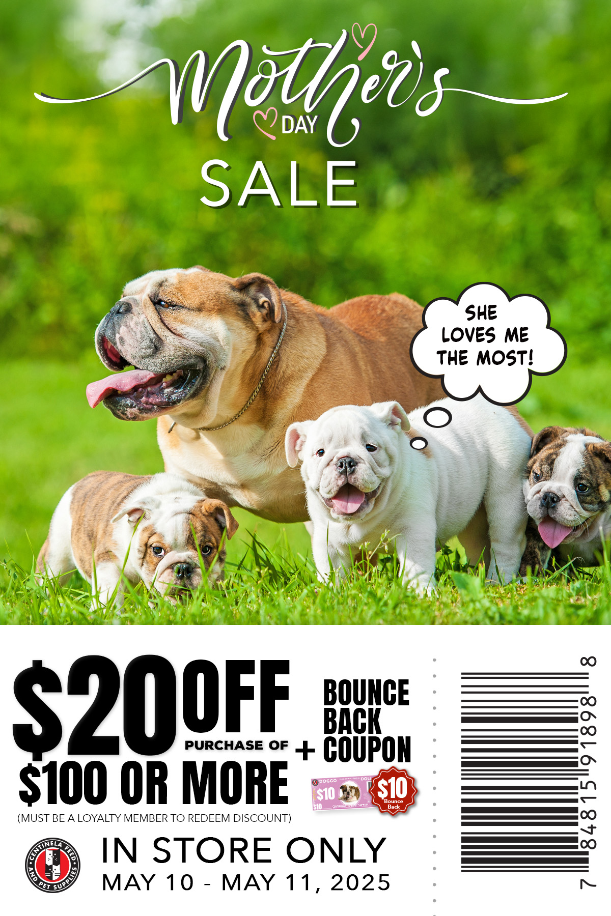 $20 Off Your Purchase of $100 with a $10 Bounce Back Coupon. Must be loyalty member to redeem discount. In-Store Only. In-store: Must present coupon at register. Not valid with any other promotion or sale. Discount taken pre sales tax. Excludes In-Store Specials, special orders, Steve's Real Food products, Small Batch, and bulk litter. While Supplies Last. No Rain Checks. Valid: 05/10/2025-05/11/2025. | | Monthly Specials Here are your Monthly CF Insider Specials! Make sure you take advantage of this month's amazing deals! No need to print and save your coupons! Your savings are automatic! | | | | |