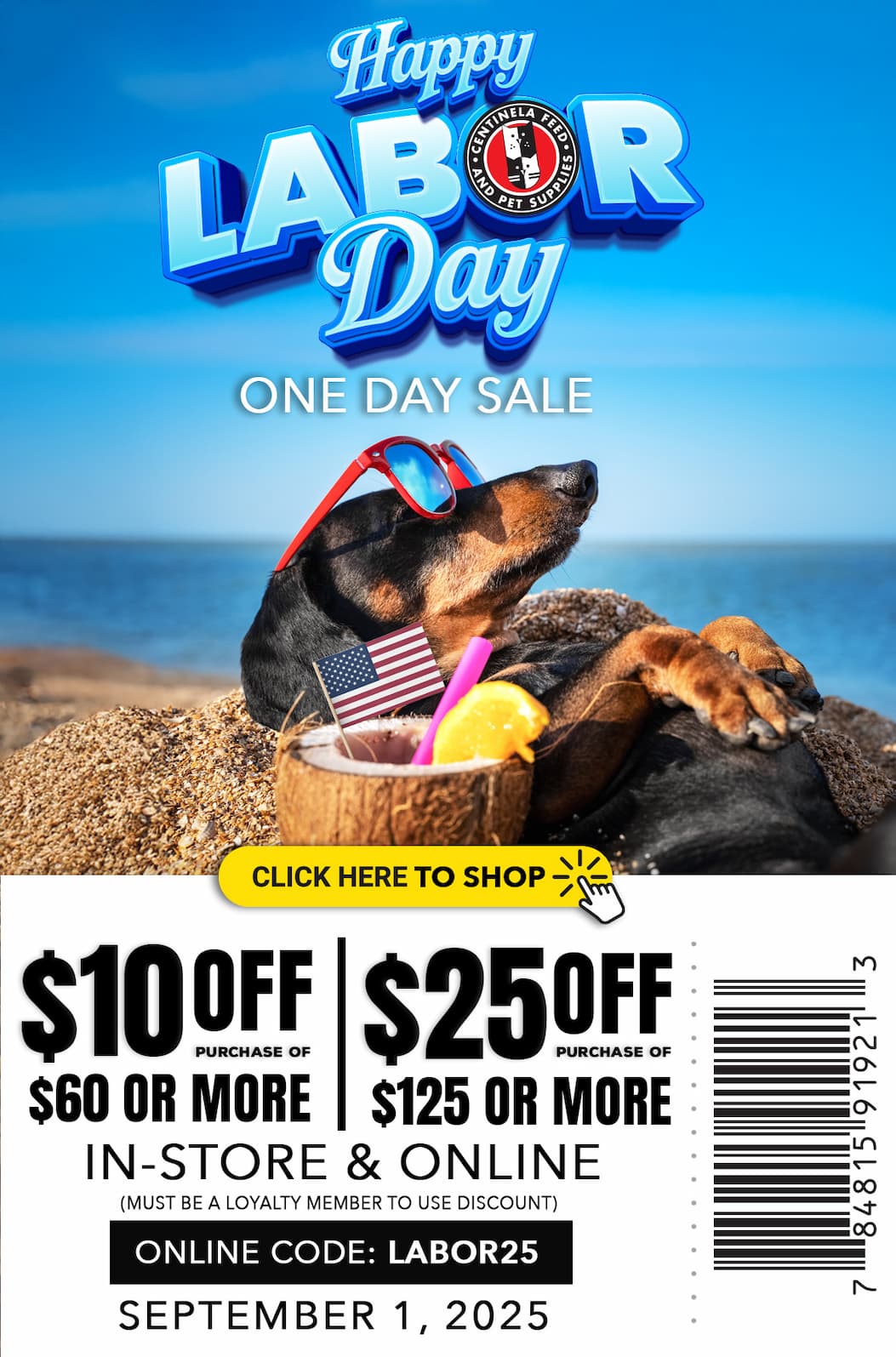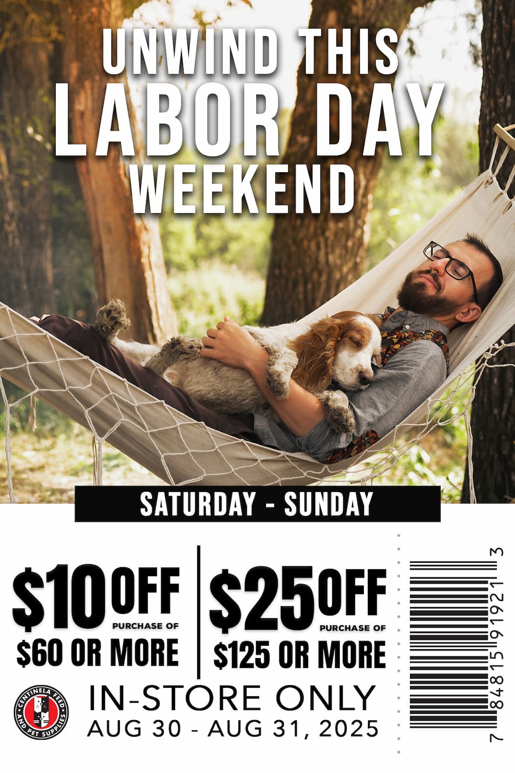 In-Store & Online: $10 Off of $60 or $25 Off of $125. In-store: Must present coupon at register. Online: must enter code at checkout. For loyalty members only. Must show email for discount. Not valid with any other promotion or sale. Discount taken pre sales tax. Excludes In-Store Specials, doggie self wash and gift cards. While Supplies Last. No Rain Checks. Valid In-Store Only: 09/1/2025. | | | | |
