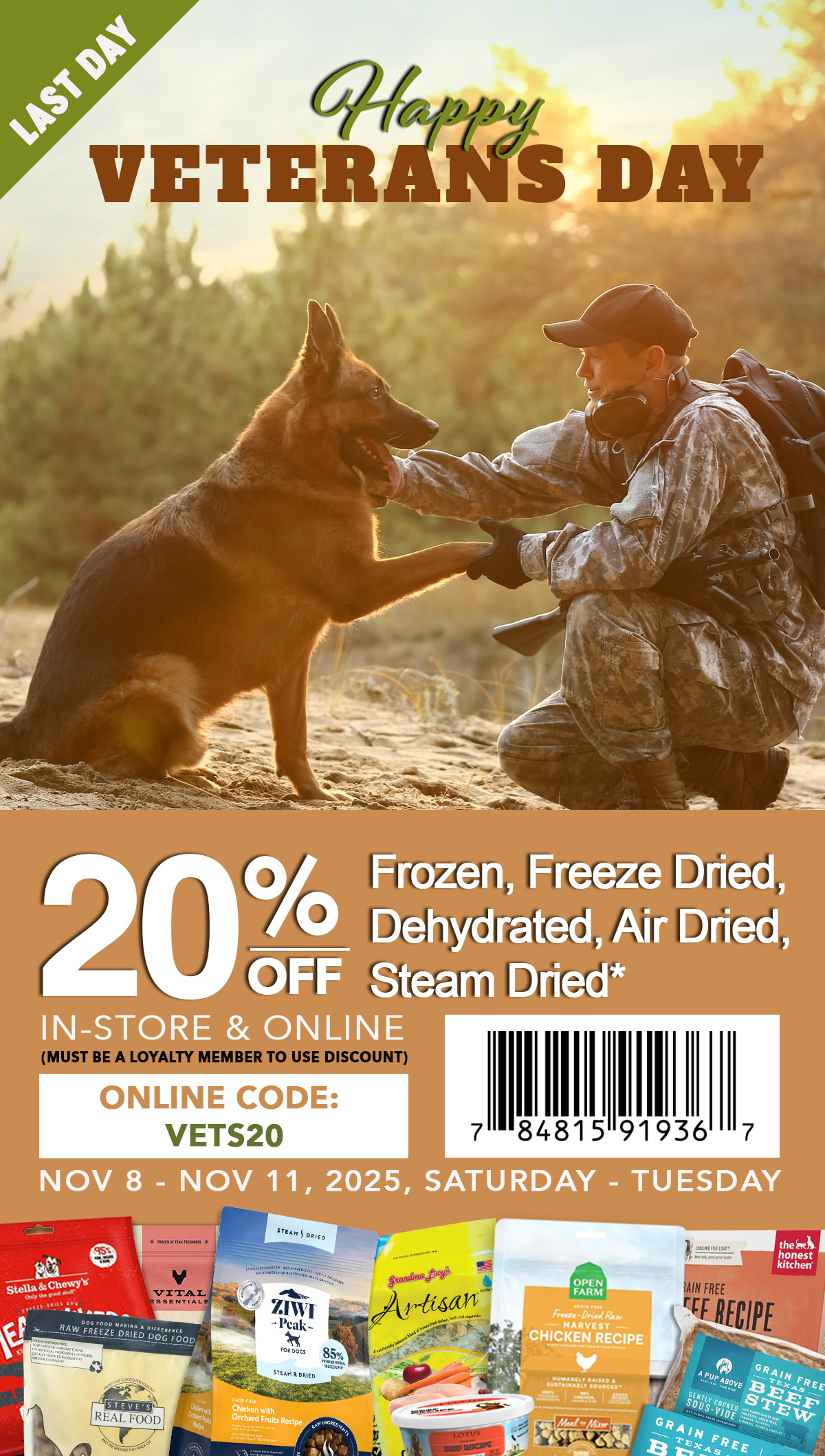 20% Off Frozen, Freeze Dried, Dehydrated, Air Dried, Steam Dried* In-store & Online: Must be a loyalty customer. Online: Must sign up/log in to use coupon code. In-store: Must present coupon at register. Not valid with any other promotion or sale. Discount taken pre sales tax. *Excludes Monthly Specials, Self Wash, and Small Batch Bulk Boxes, Primal Products and bulk litter. While Supplies Last. No Rain Checks. Valid Til: 11/11/25. | | Monthly Specials Here are your Monthly CF Insider Specials! Make sure you take advantage of this month's amazing deals! No need to print and save your coupons! Your savings are automatic! | | | | |
