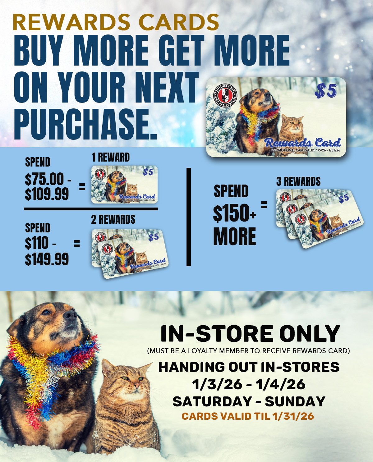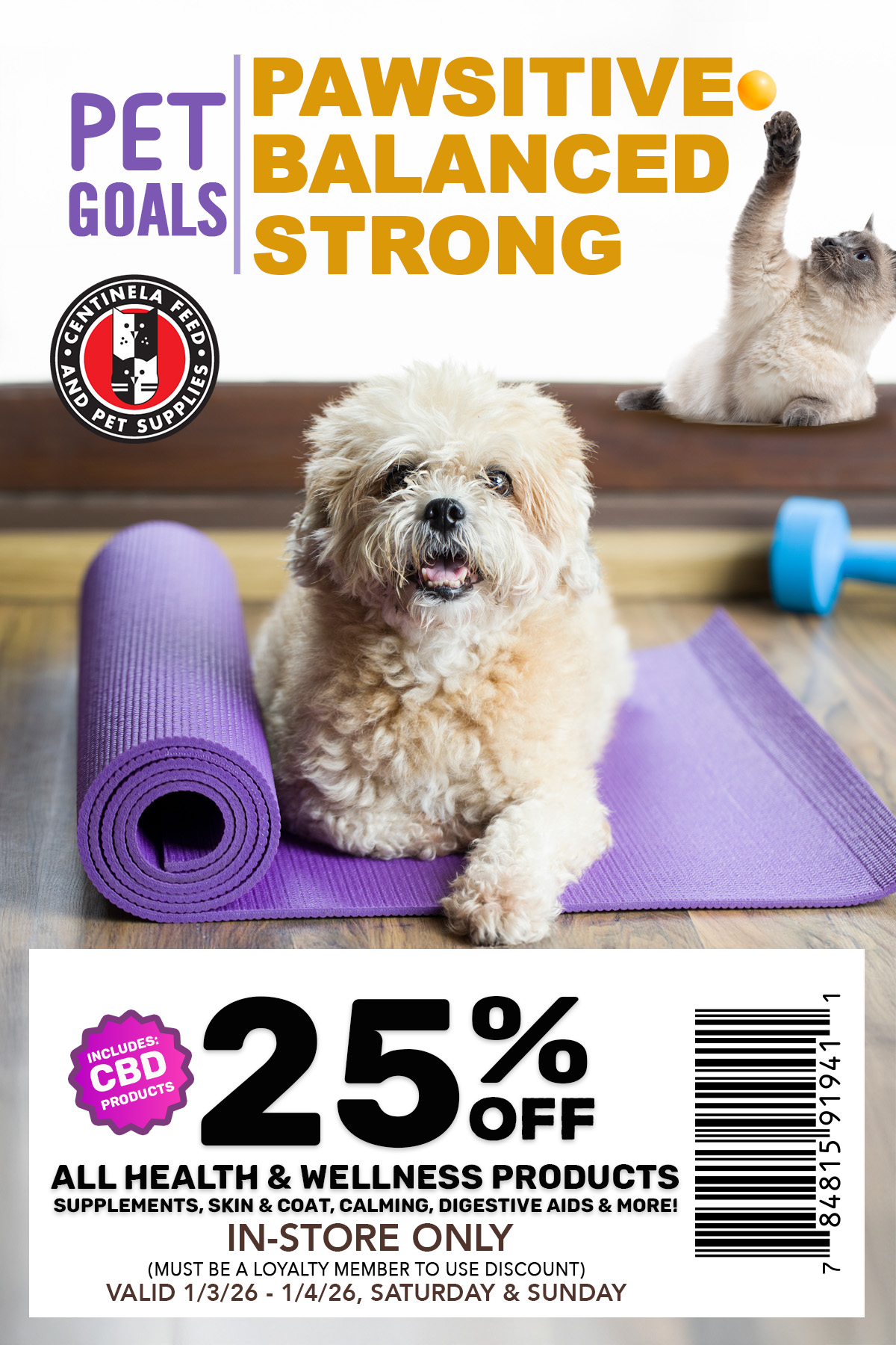 25% Off All Health and Wellness Products. Must be a loyalty member to use discount. In-store Only: Must present coupon at register. Not valid with any other promotion or sale. Discount taken pre sales tax. Excludes In-Store Specials, Primal, Small Batch bulk boxes, special orders, and bulk litter. While Supplies Last. No Rain Checks. Valid until: 1/3/26-1/4/26 | | Monthly Specials Here are your Monthly CF Insider Specials! Make sure you take advantage of this month's amazing deals! No need to print and save your coupons! Your savings are automatic! | | | | |
